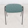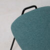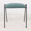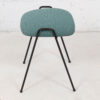 - A plump upholstered seat is supported by two black iron hairpin legs