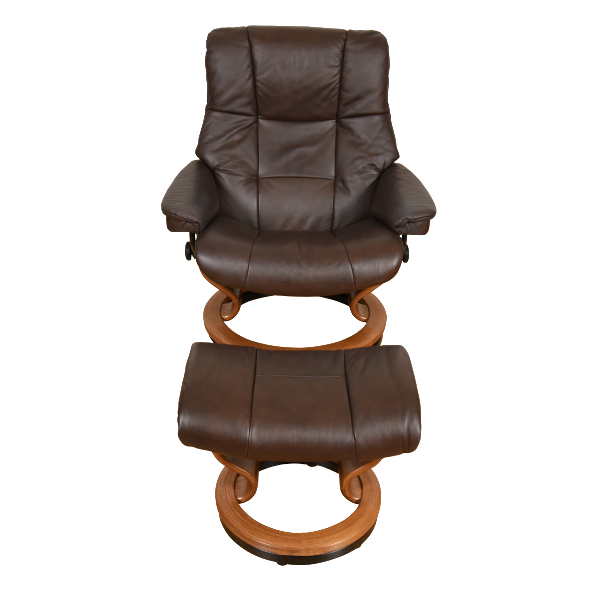 Ekornes Stressless Dark Brown Norwegian Modern Lounge Chair + Ottoman w/ Elevator Rings