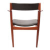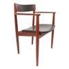 A chair featuring some of the best characteristics of Danish Modern seating — floating seat, angled back, splayed back legs, and superb wood craftsmanship. Teak is a rich dark patina indicative of the early Danish Modern period. Leather on the seat is distressed consistent with age and use.
