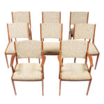 Set of 8 Teak Upholstered (2 Arm + 6 Side) Tall-Back Dining Chairs |