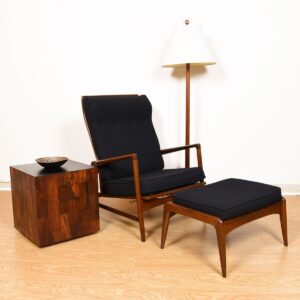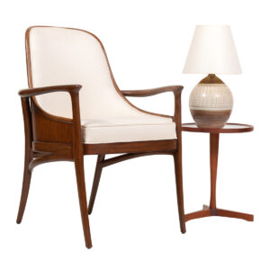 Pair, 1960s ‘Seal’ Lounge Chairs by Ib Kofod-Larsen in Teak + Rattan w. New Custom Cushions