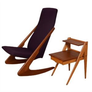 Hans Olsen Danish Modern Teak + Cane Rocking Chair w Oatmeal Cushions