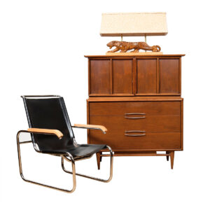 Palecek’s Modern Day Interpretation of Kofod Larsen’s ‘Elizabeth Chair’ Accented w Sabertooth Legs