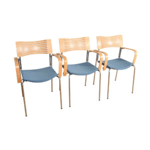 Set of Danish Bentwood & Chrome Stackable Arm Chairs