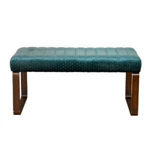Modern Upholstered Green Velvet Bench w. Metal Sleigh-Leg Frame