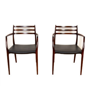 Pair of Danish Modern Rosewood Arm Chairs in Leather