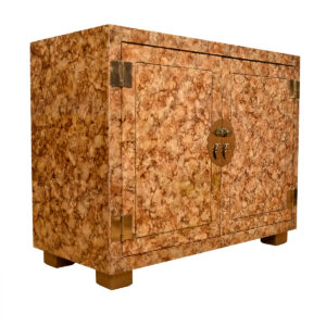 Henredon Lacquered Tortoise Shell Patinated 2-Door Storage | Bar Cabinet