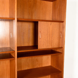 Danish Tall Teak Bookcase w. Sliding Wood Shelf Doors