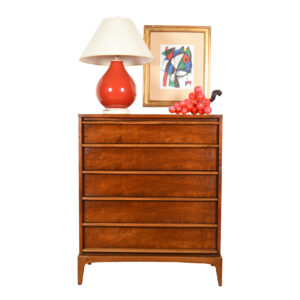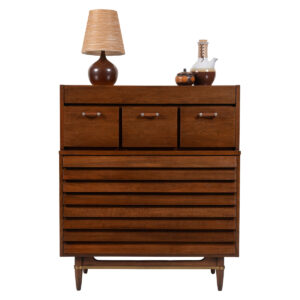 Impressive MCM Walnut Gentleman’s Chest w. Curvaceous Front + Sculpted Handle