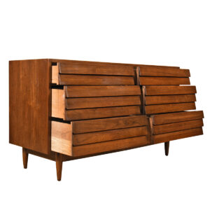 American of Martinsville 54″ Walnut Dresser w Deep Graduated Drawers