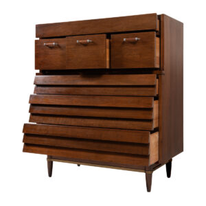 Mid Century Tall Walnut Faceted Dresser | Chest of Drawers