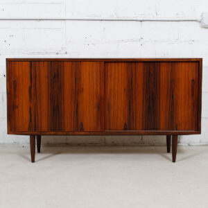 Danish Teak + Glass Display Top | Low Bookcase with Sleigh Legs