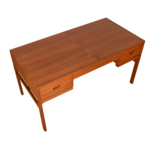 Minimalist Danish Teak Desk w a Hidden Spring-Top Loaded Dashboard of Cubby Storage