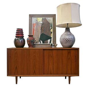 Sliding-Door Compact Credenza | Danish Modern Teak Media Cabinet