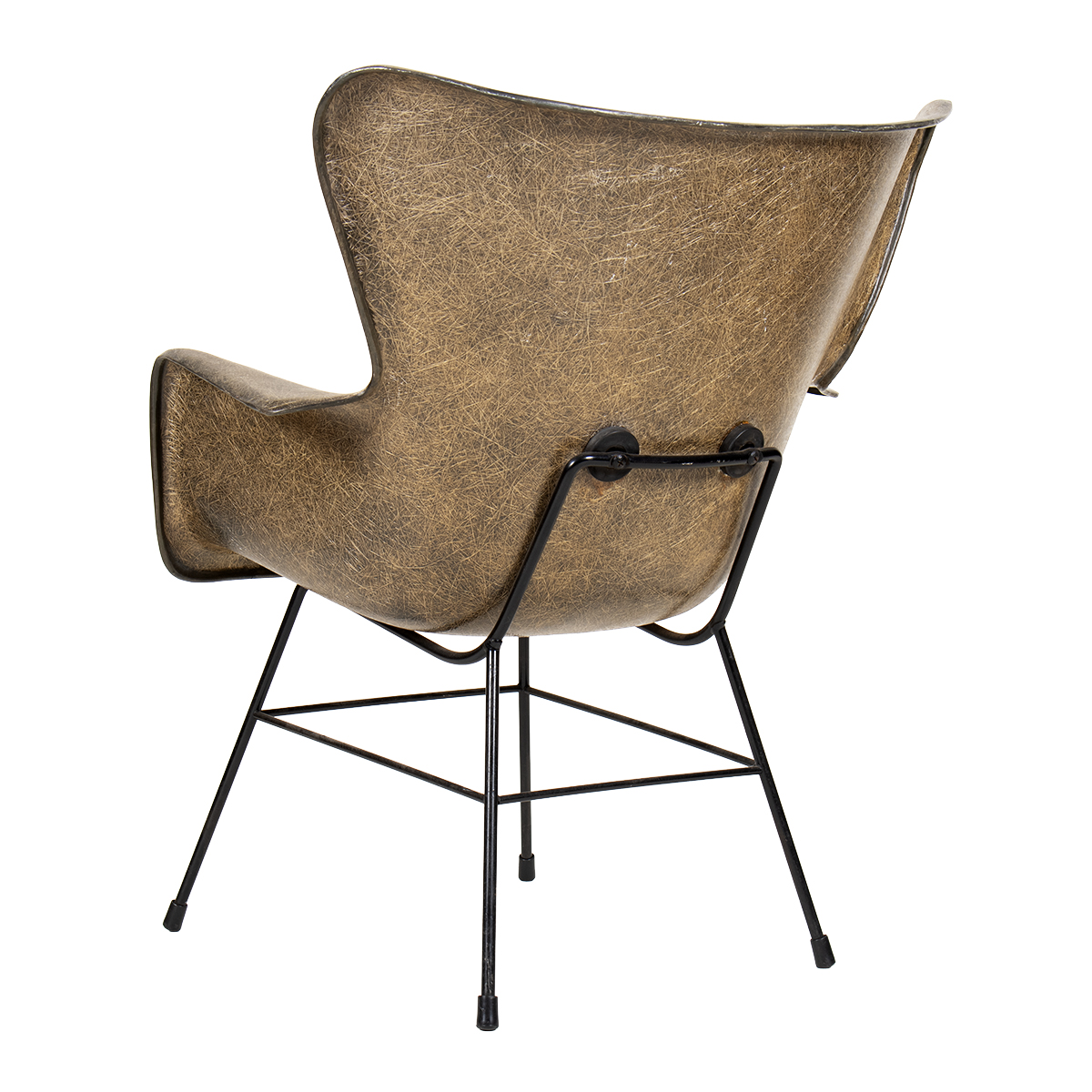 1950s Wingback Chair in Molded Fiberglass + Iron by Lawrence Peabody