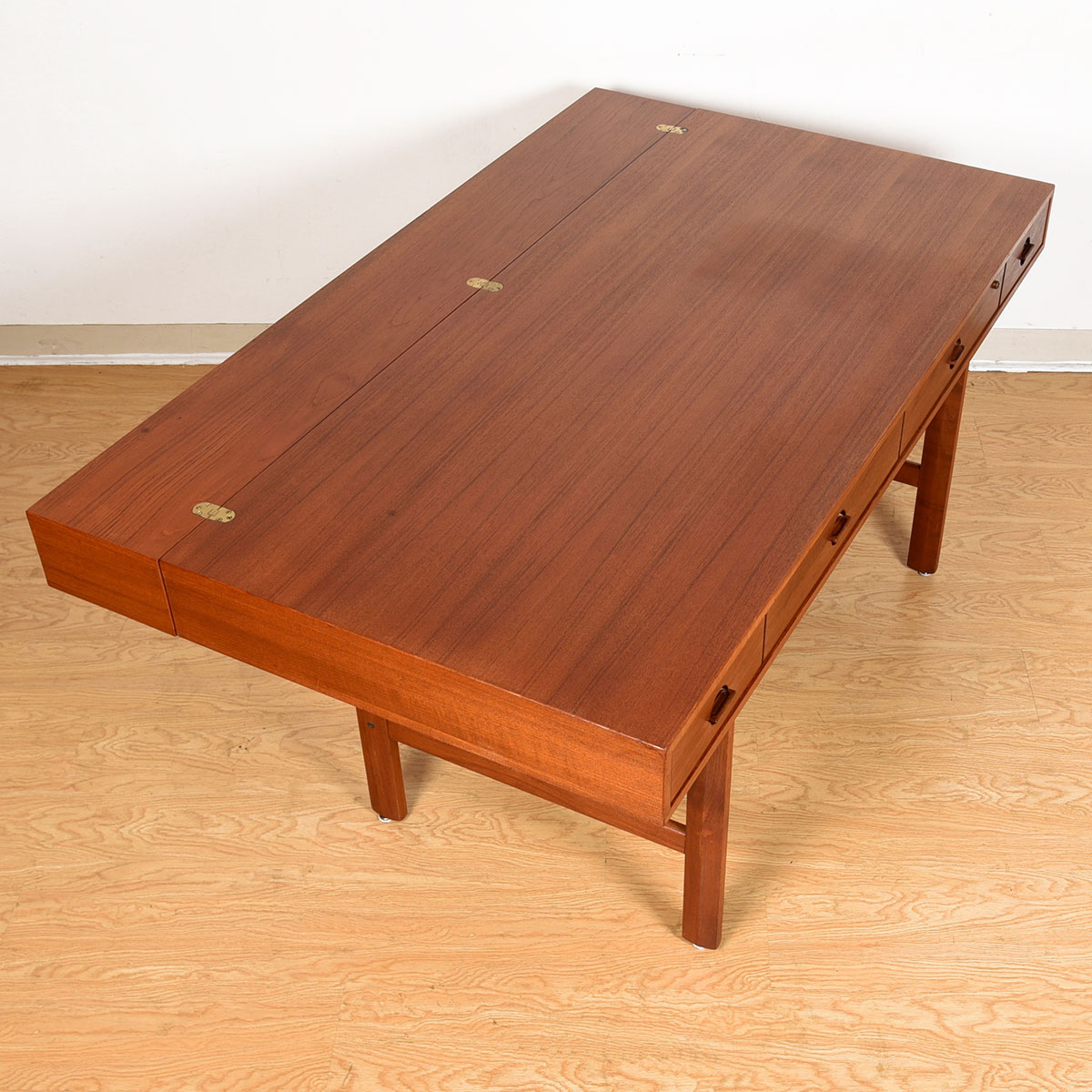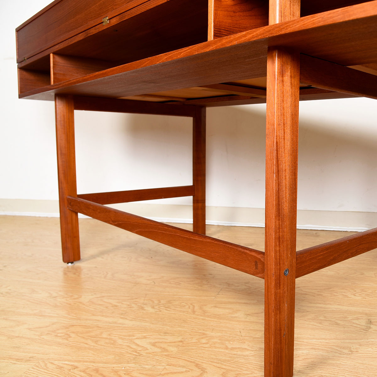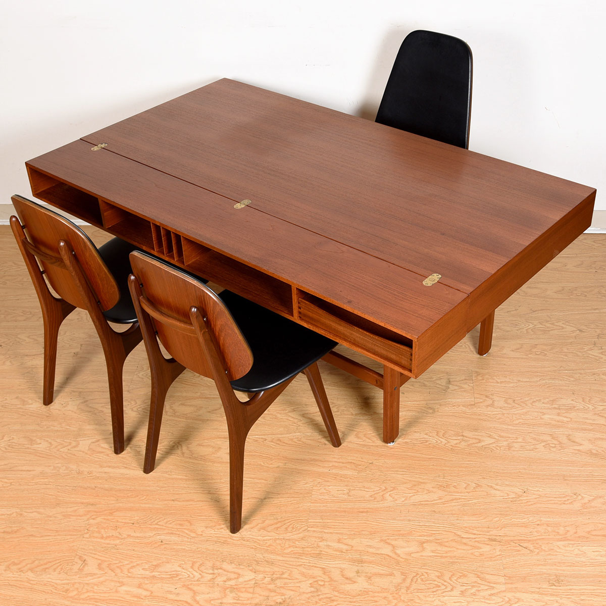 1965 Early Production Lovig Danish Modern ‘Flip-Top’ Teak Partner’s Desk + Key