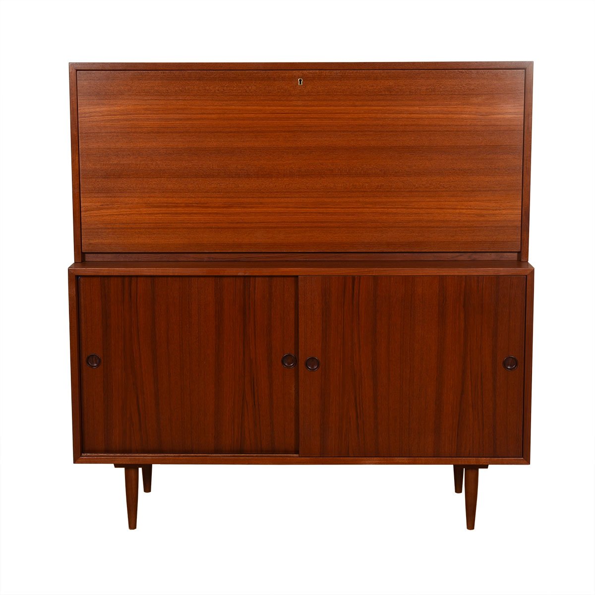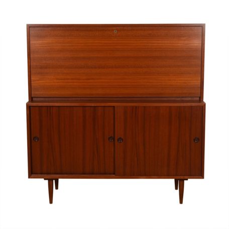 2-Piece Danish Teak Drop-Down Secretary / Sliding Door Cabinet