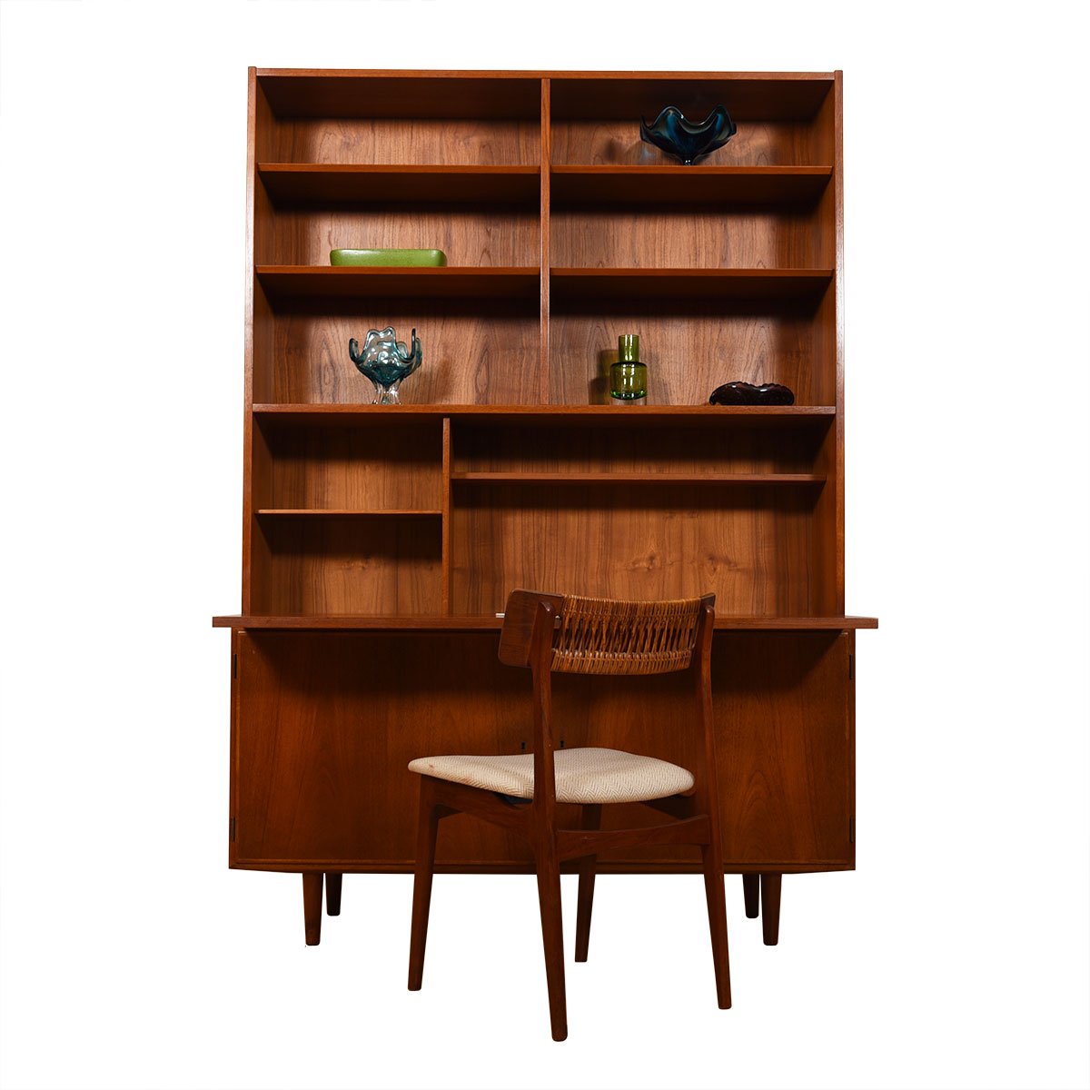 2-Piece Danish Teak Secretary / Display / Locking Cabinet