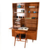This is a 2-piece Danish Modern cabinet in walnut with a multi-functional top that includes a locking drop down door, which can serve as a secretary desk or bar area.