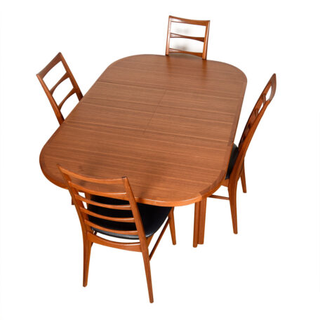 38.25″ Teak Rounded Square Expanding Danish Modern Dining Table w: Butterfly Leaf