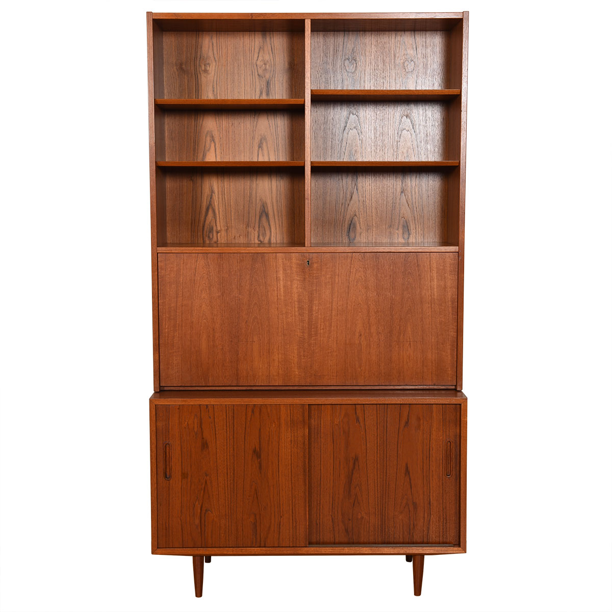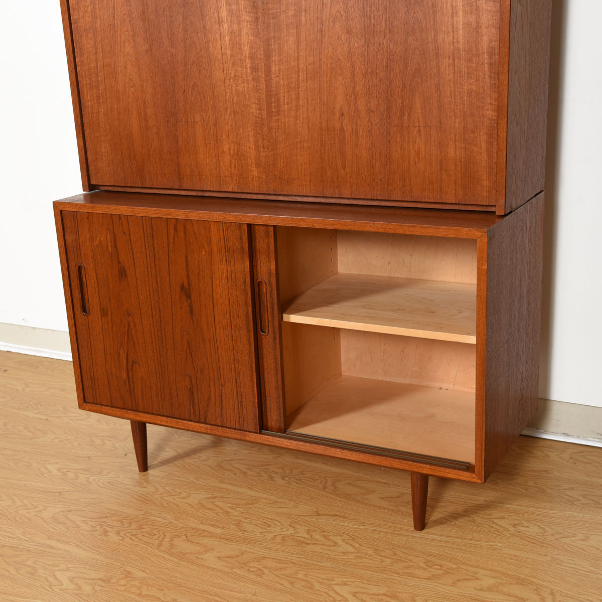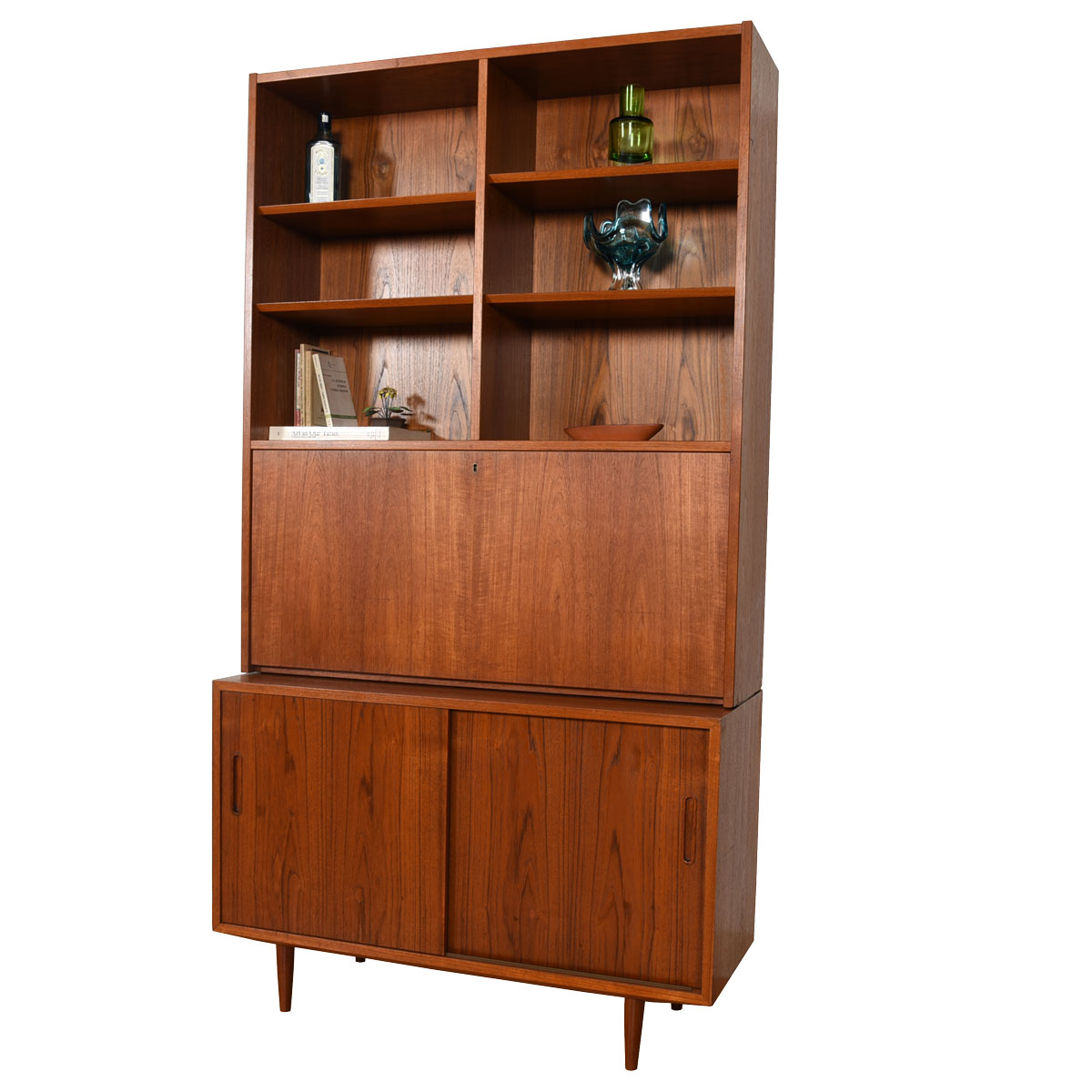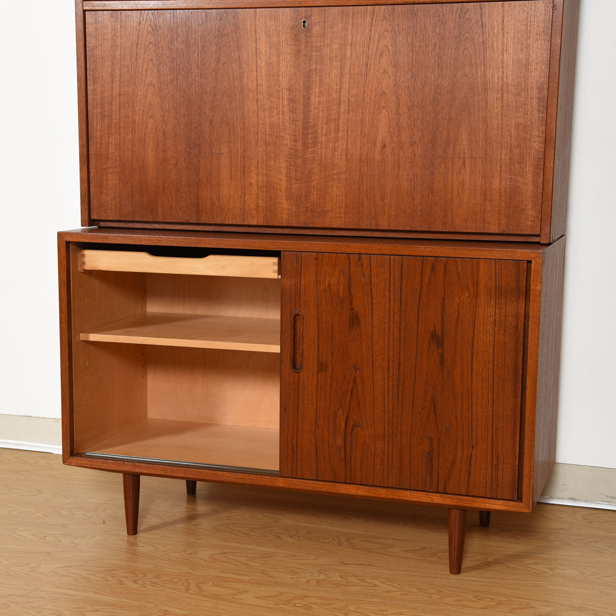 42″ Danish Teak 2 Pc. Drop-Down Secretary / Display Top w/ Sliding Door Cabinet