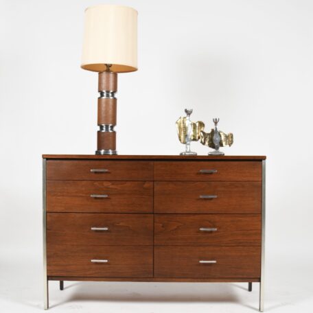 - Crisp Modernist design by Paul McCobb for Calvin in walnut and chrome