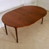 51″ Danish Teak Round-to-Oval Expanding Dining Table w: Two Leaves