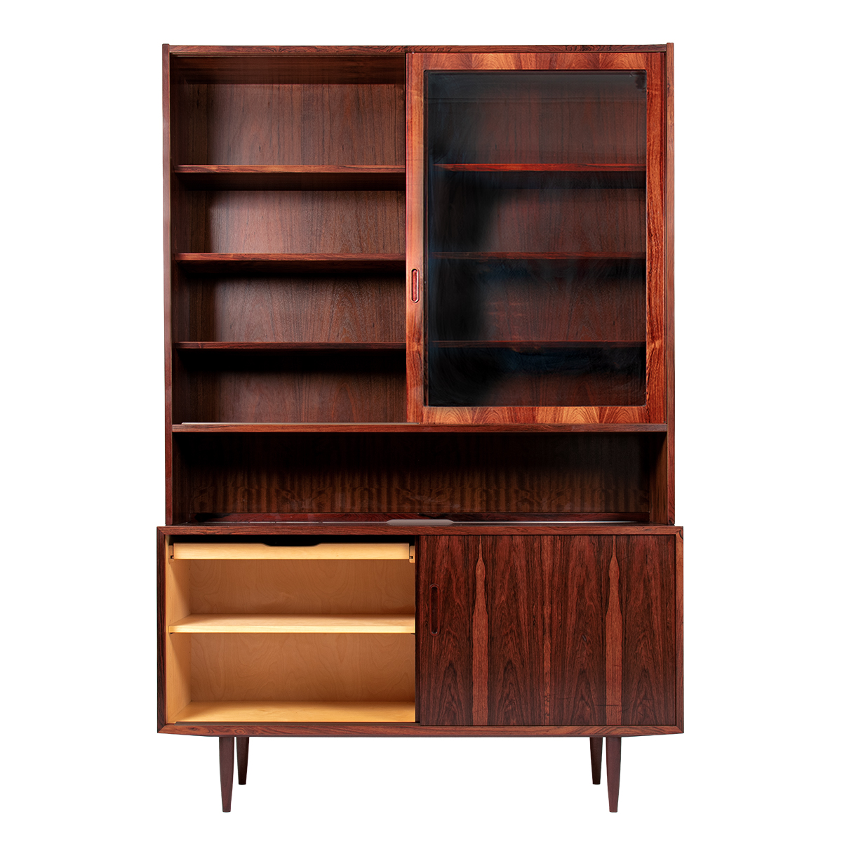 To arrange purchase or for more information about the 55″ 2-pc Danish Rosewood Storage | Sliding Door Cabinet w Glass Display Top call us at 202.882.1648 or email us at info@modernmobler.com