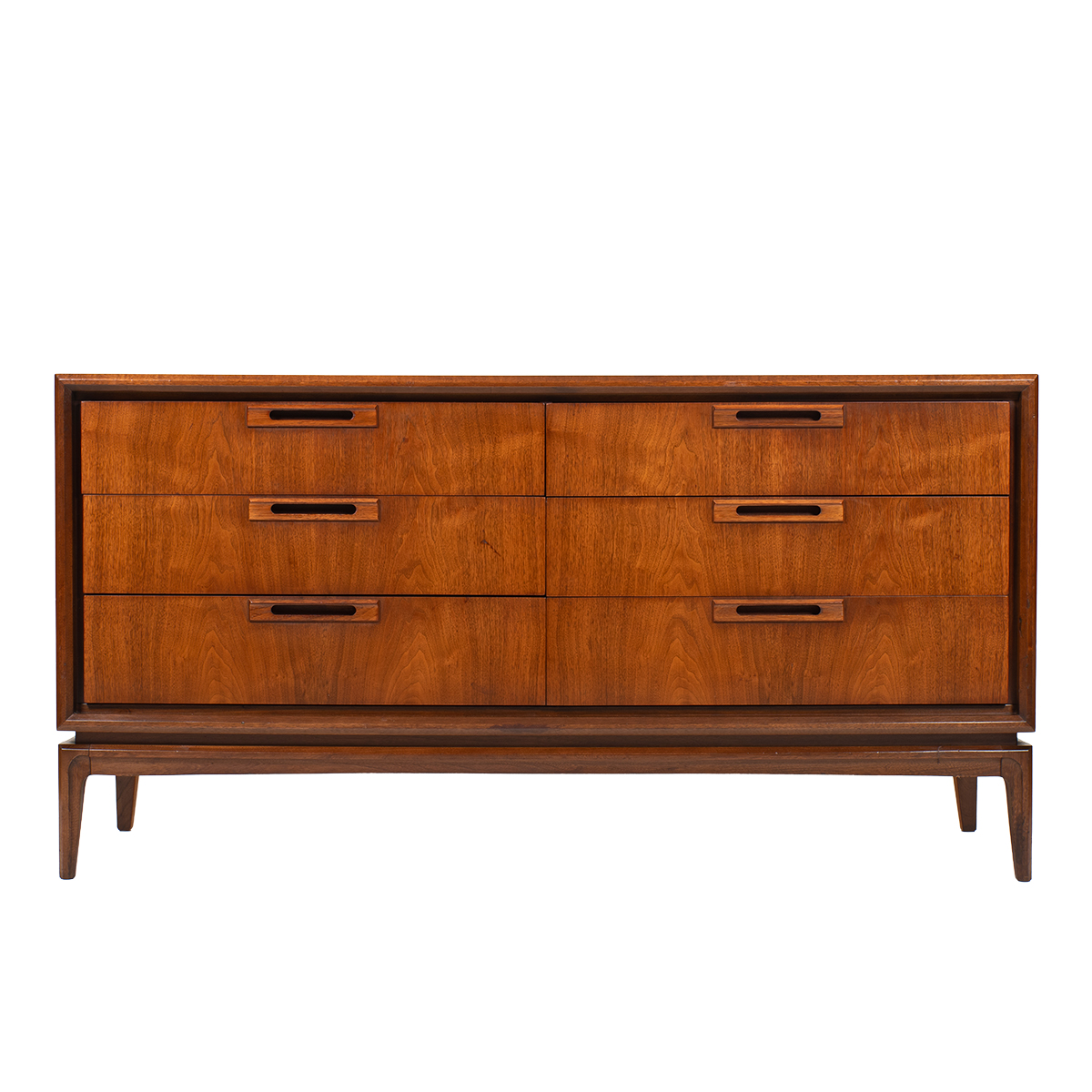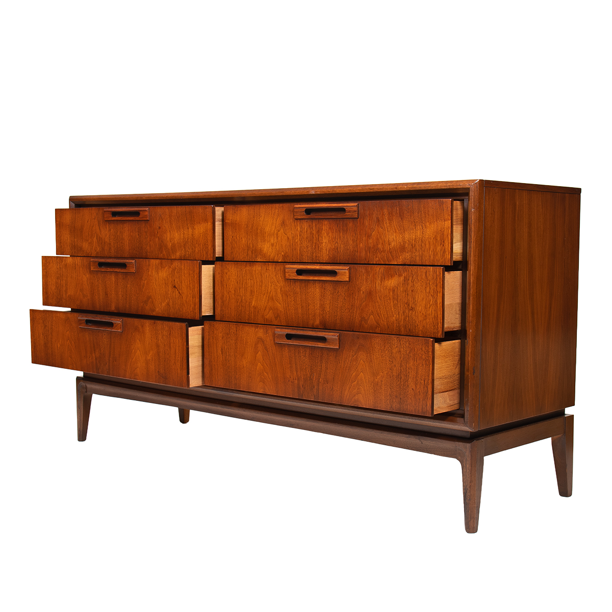 60” MCM Walnut Dresser w. 6 Deep Drawers