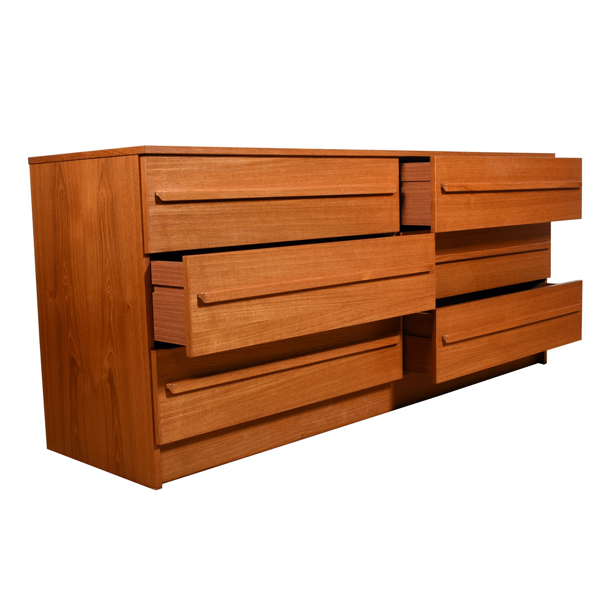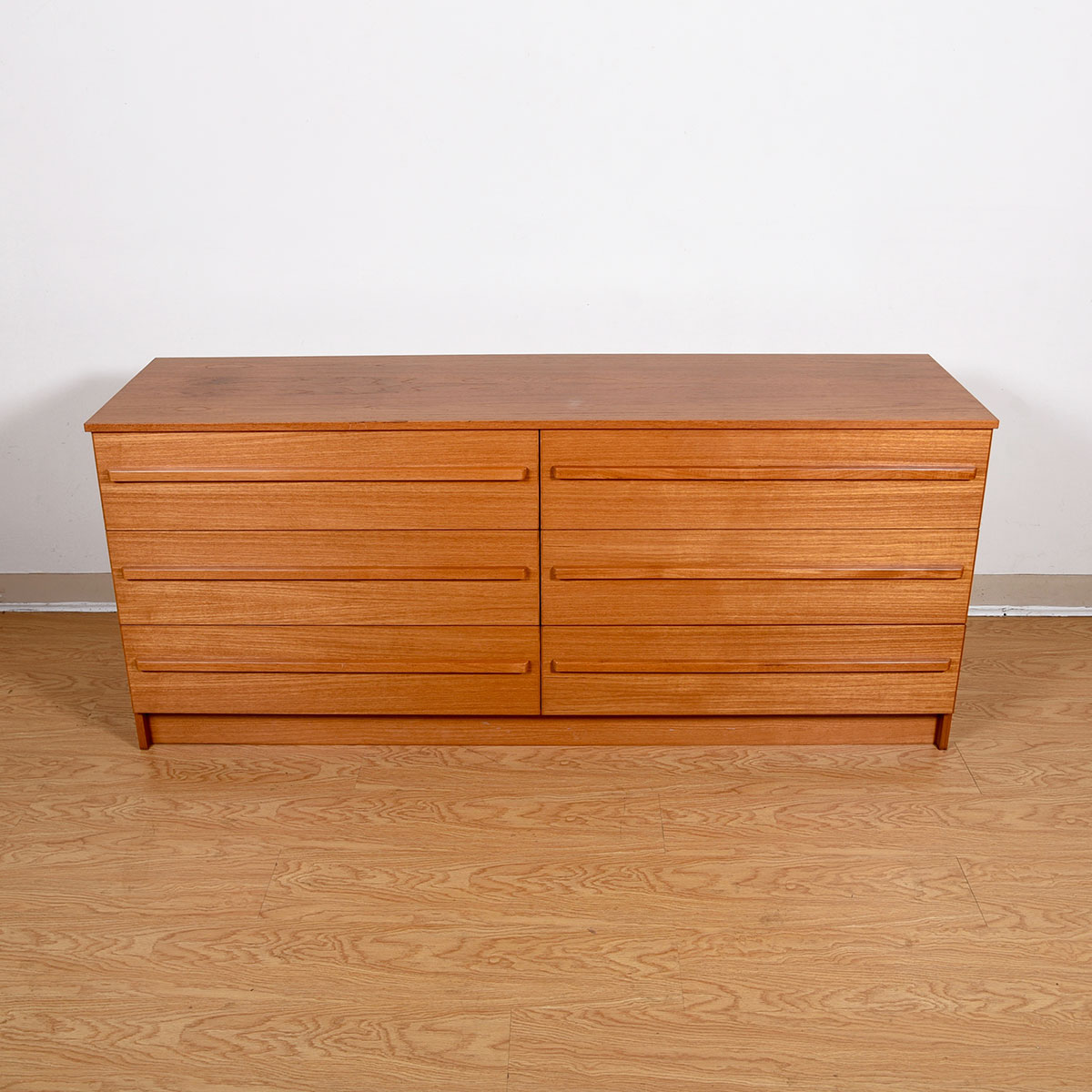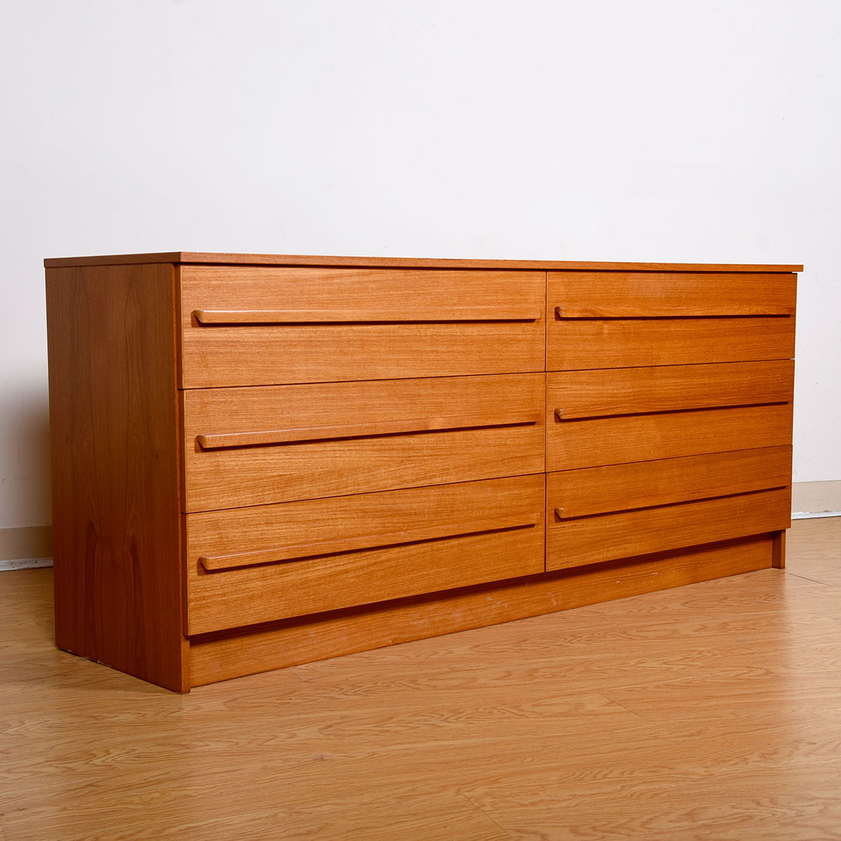 66″ Danish Modern Teak Dresser with 6-Deep-Drawers