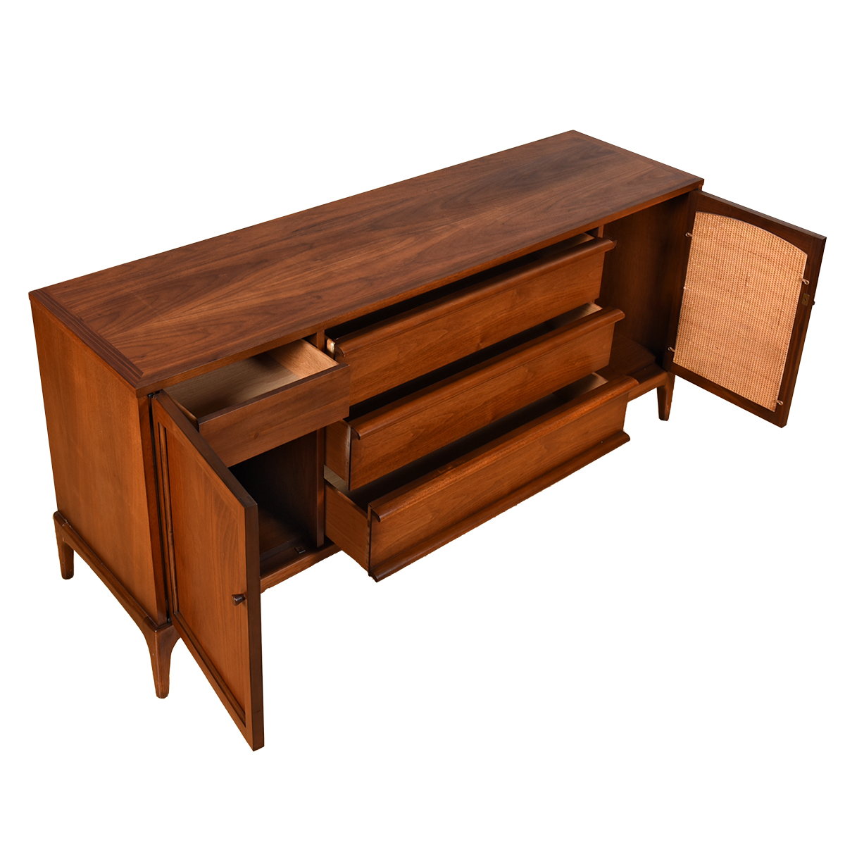 - Change the Look of this Sideboard to Suit Your Taste or to Follow the Seasons – Reversible Panels on the Doors Allow for Walnut in Cool Months, Caning in the Warmer Months