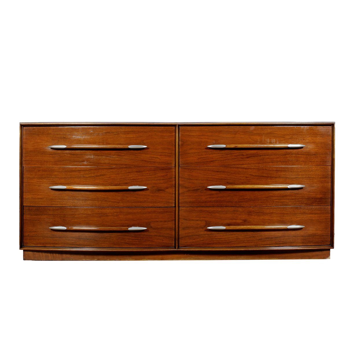 67” Widdicomb 6-Drawer MCM Walnut Dresser w Deep Drawers + Distinctive Pulls