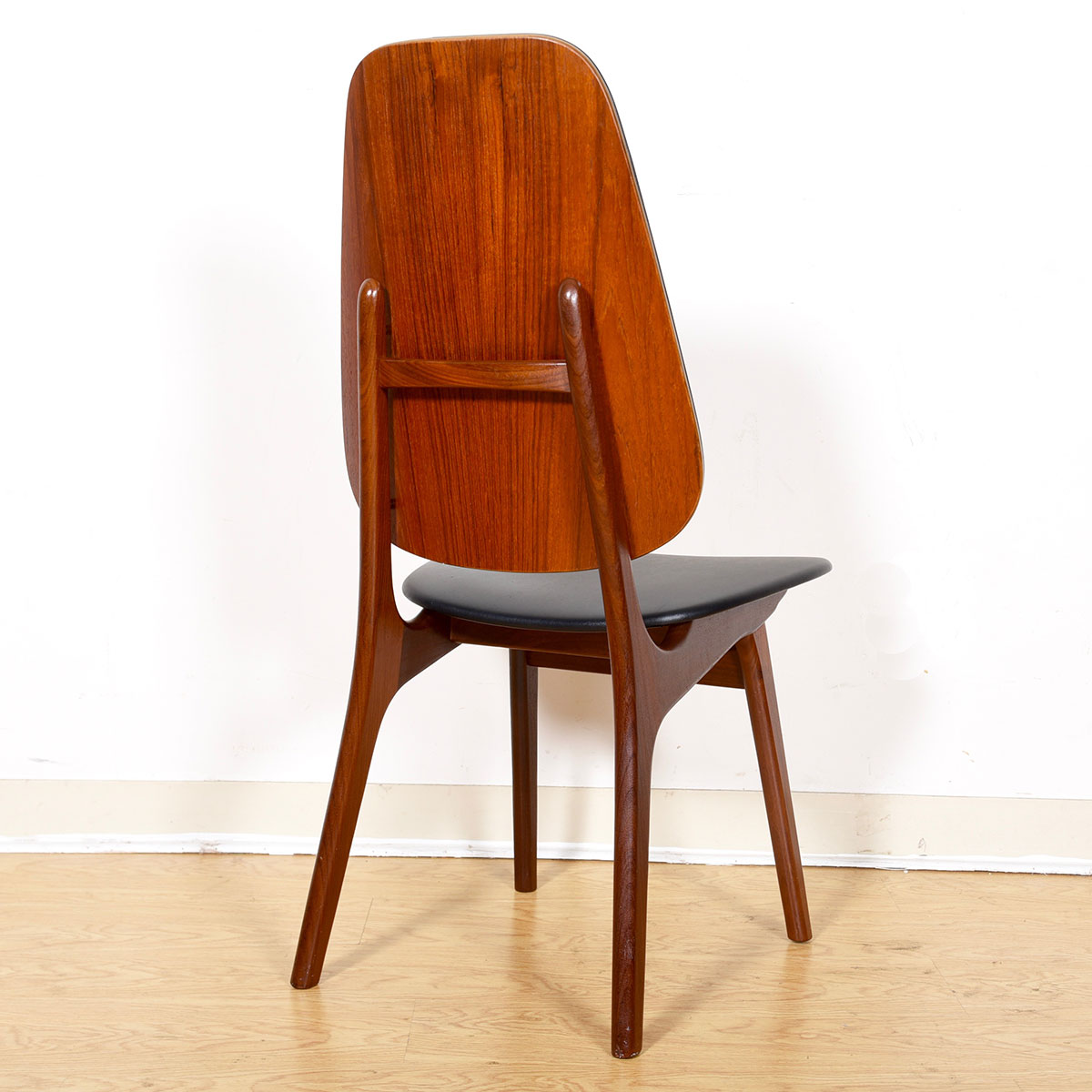 - Sculptural Danish Mid-Century Modern chair in teak & black leatherette by Danish designer Arne Hovmand-Olsen