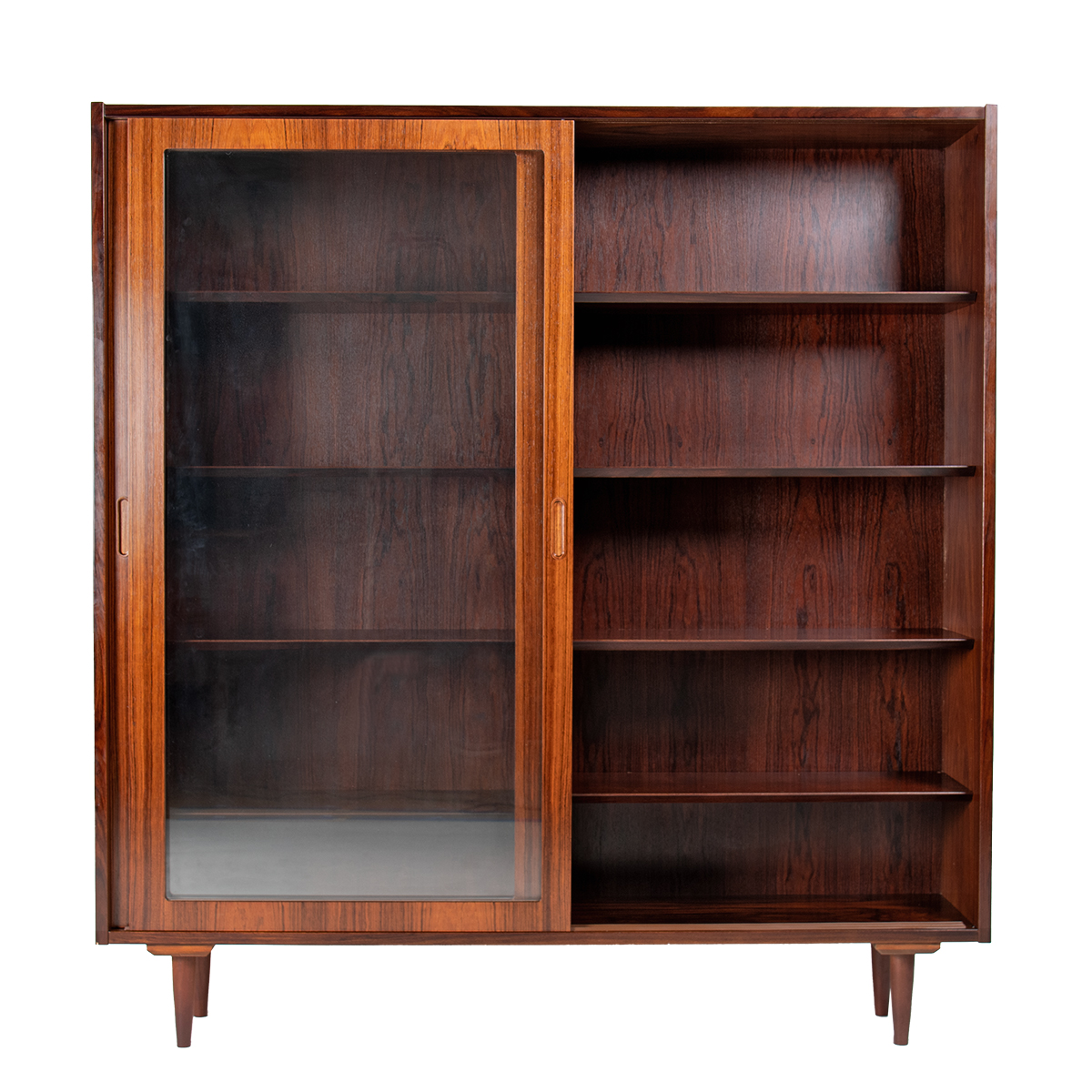 - Store & display your books and objects behind the glass doors on this beautiful Danish rosewood bookcase