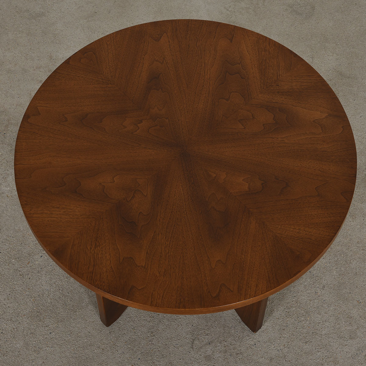 Look at the mesmerizing walnut grain on the top of this round coffee table! Pair that with the sculptural legs forming the base and you have a stunning mid-century coffee table in the style of Adrian Pearsall. This table will add a dash of MCM style to any decor.