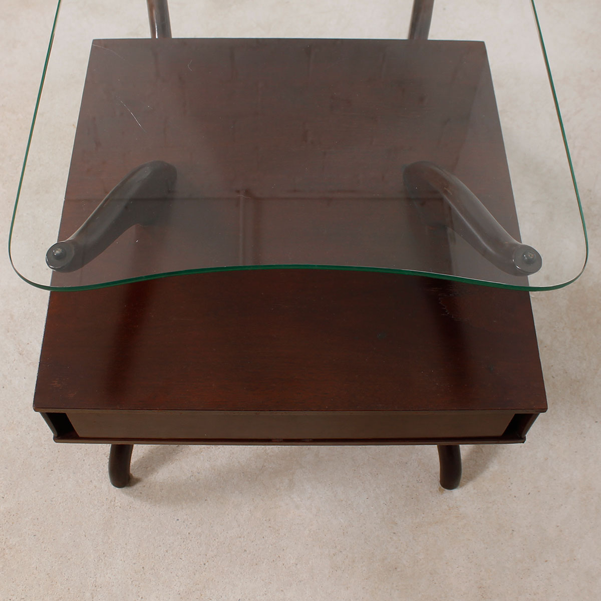 Vladimir Kagan Walnut & Glass Top Accent Table w/ Storage Drawer