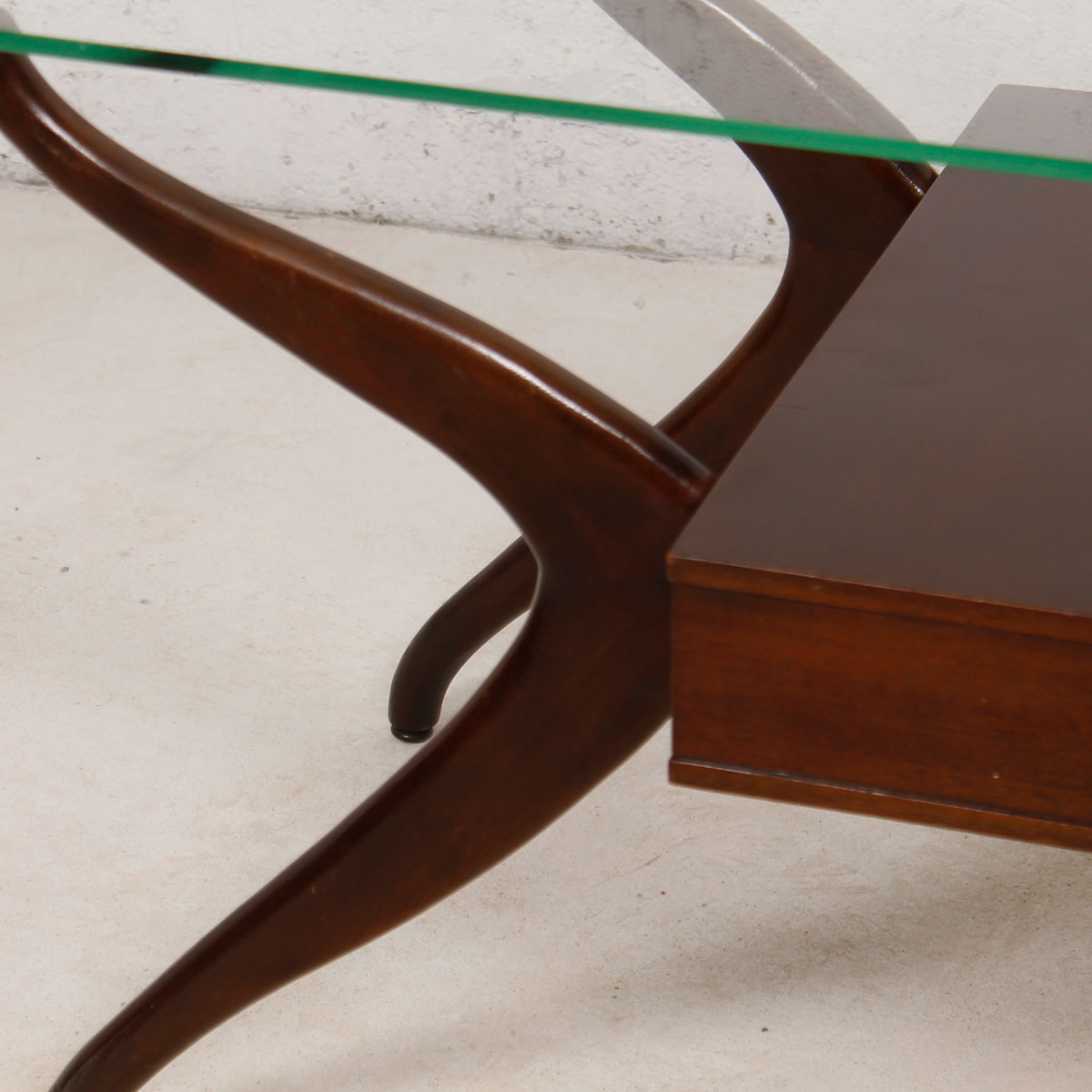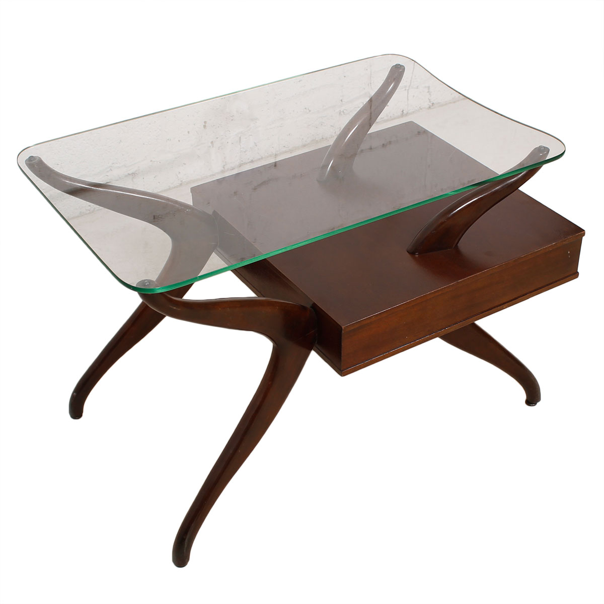 To arrange purchase or for more information about the Adrian Pearsall Style Walnut & Glass Top Accent Table w/ Storage Drawer call us at 202.882.1648 or email us at info@modernmobler.com