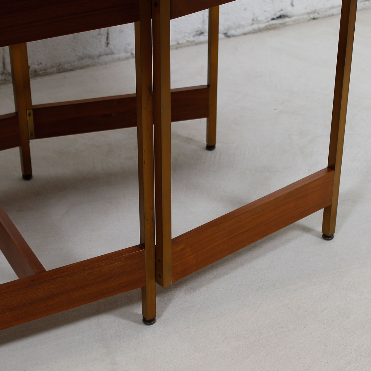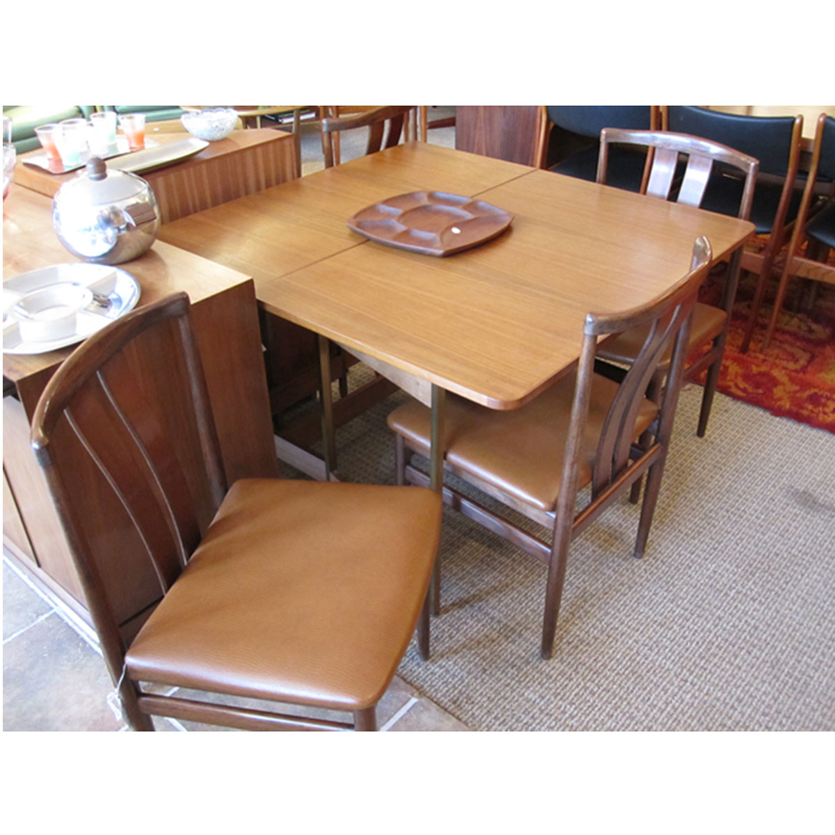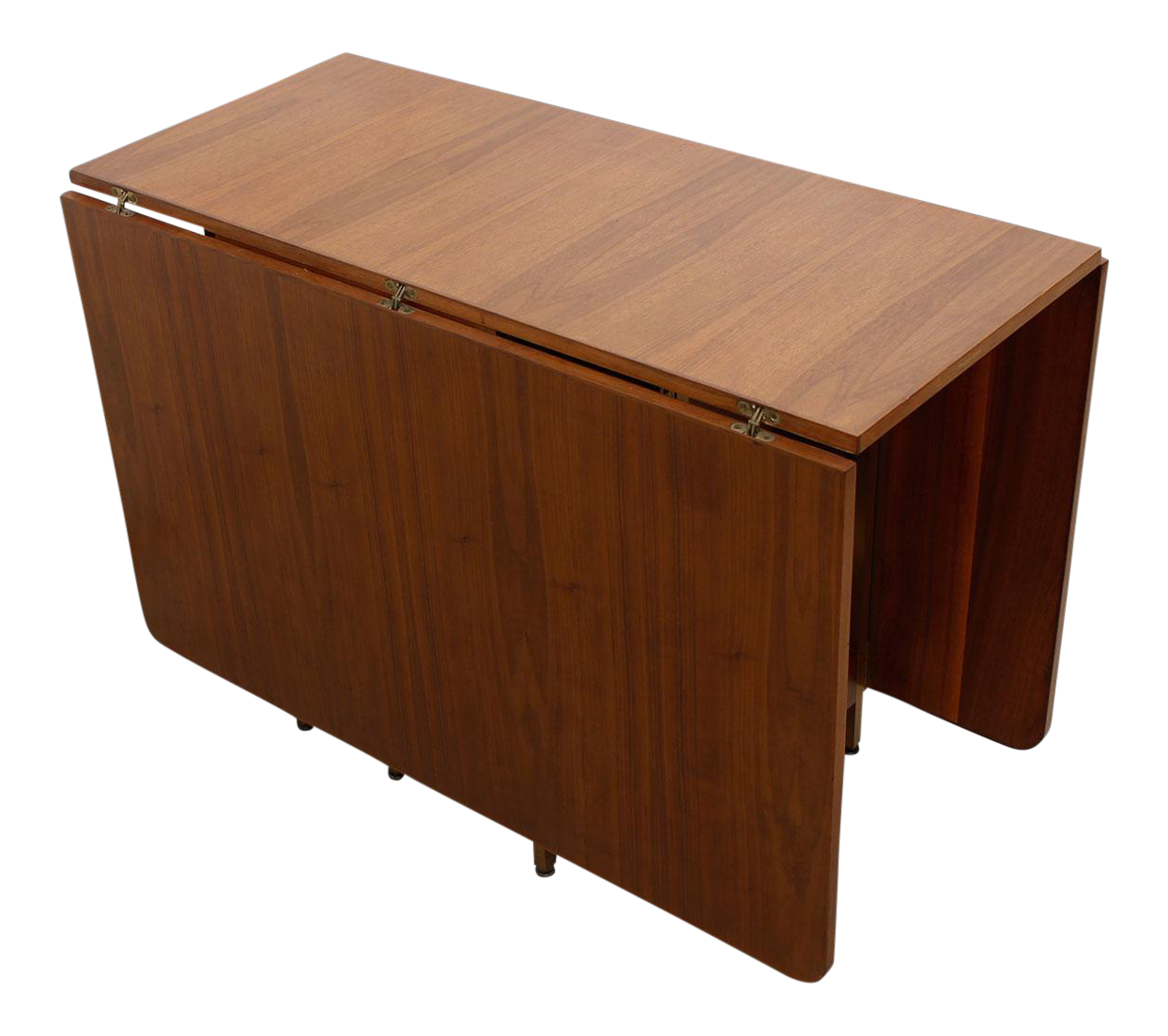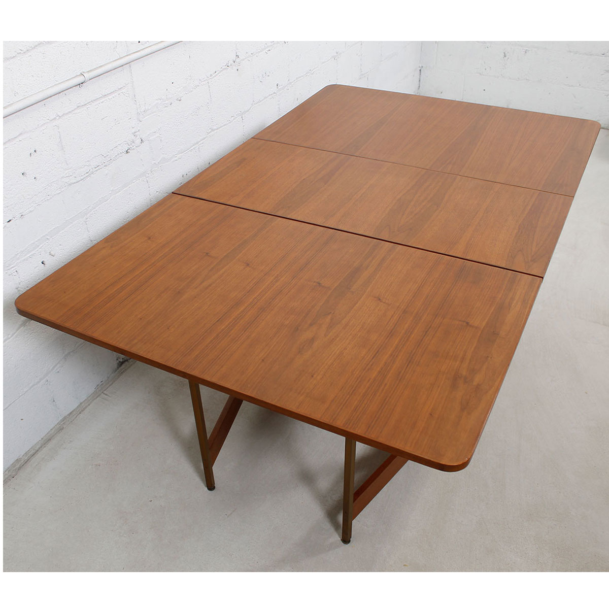 Use this cabinet maker-quality table as is, or with 1 or 2 dropleafs extended. As the extension legs are expandable, they can be adjusted to accommodate chairs of varying widths. In the style of Harvey Probber. Perfect for Life in the City!