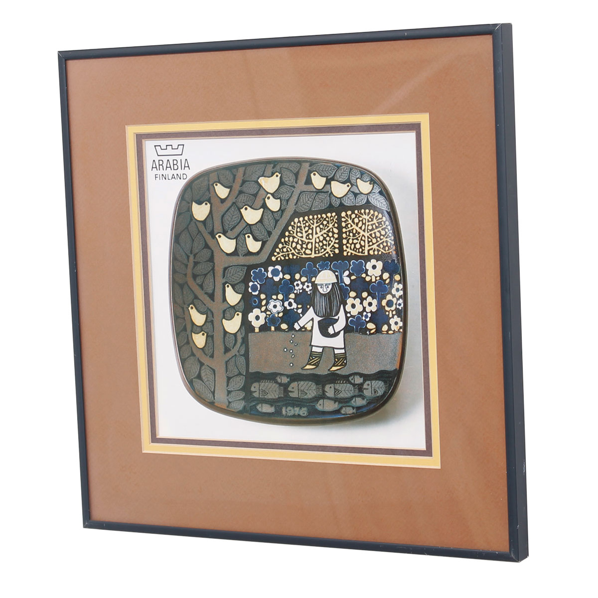 Framed copy of a print of an ad for Arabia, Finland pottery, circa 1976.