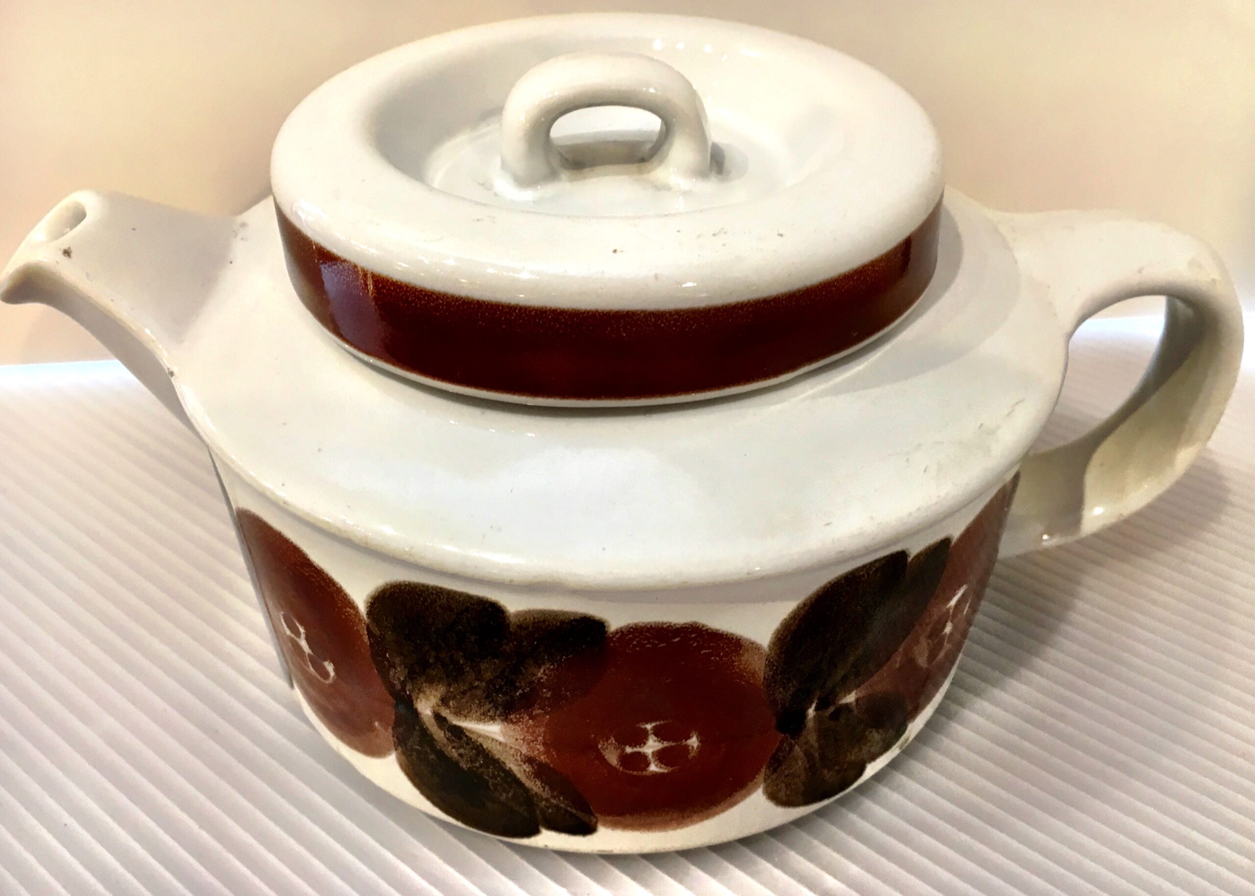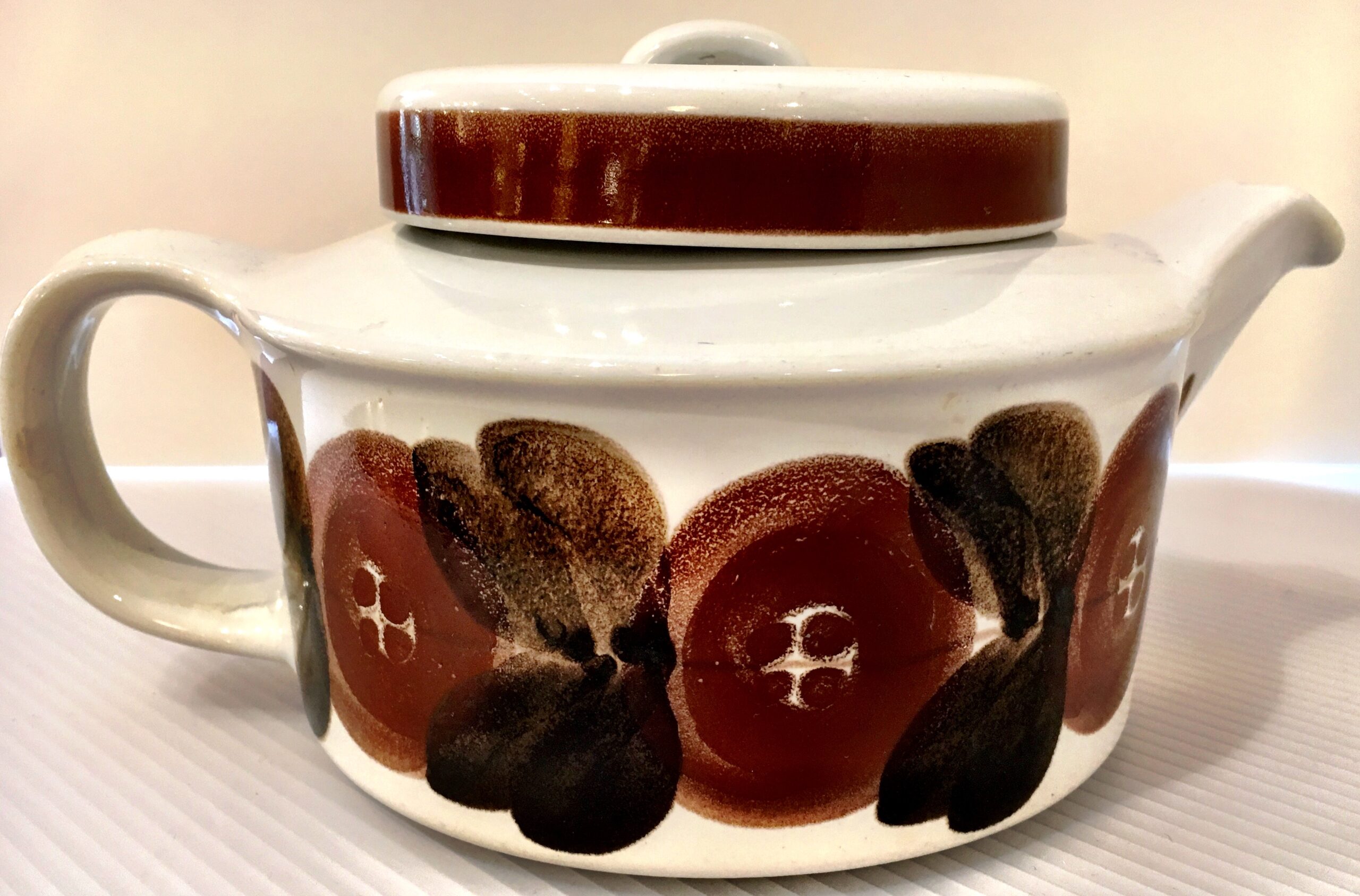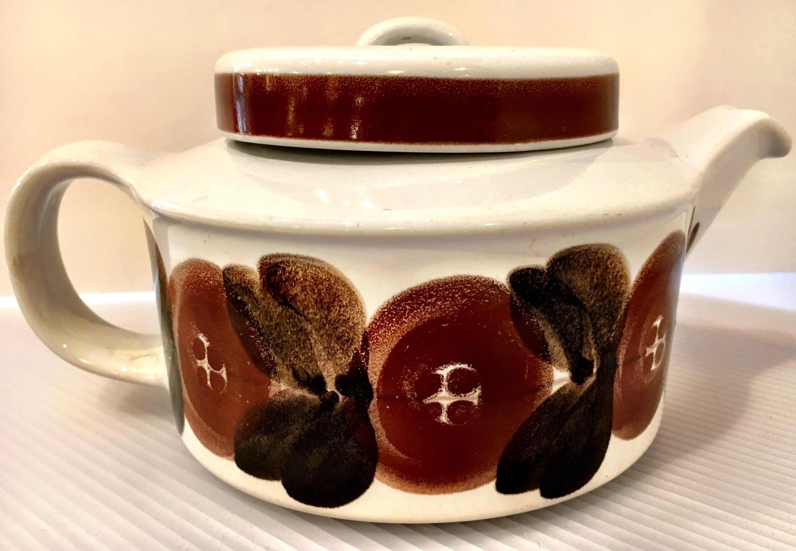 Arabia, Finland Hand Painted Teapot, “Anemone”, Brown