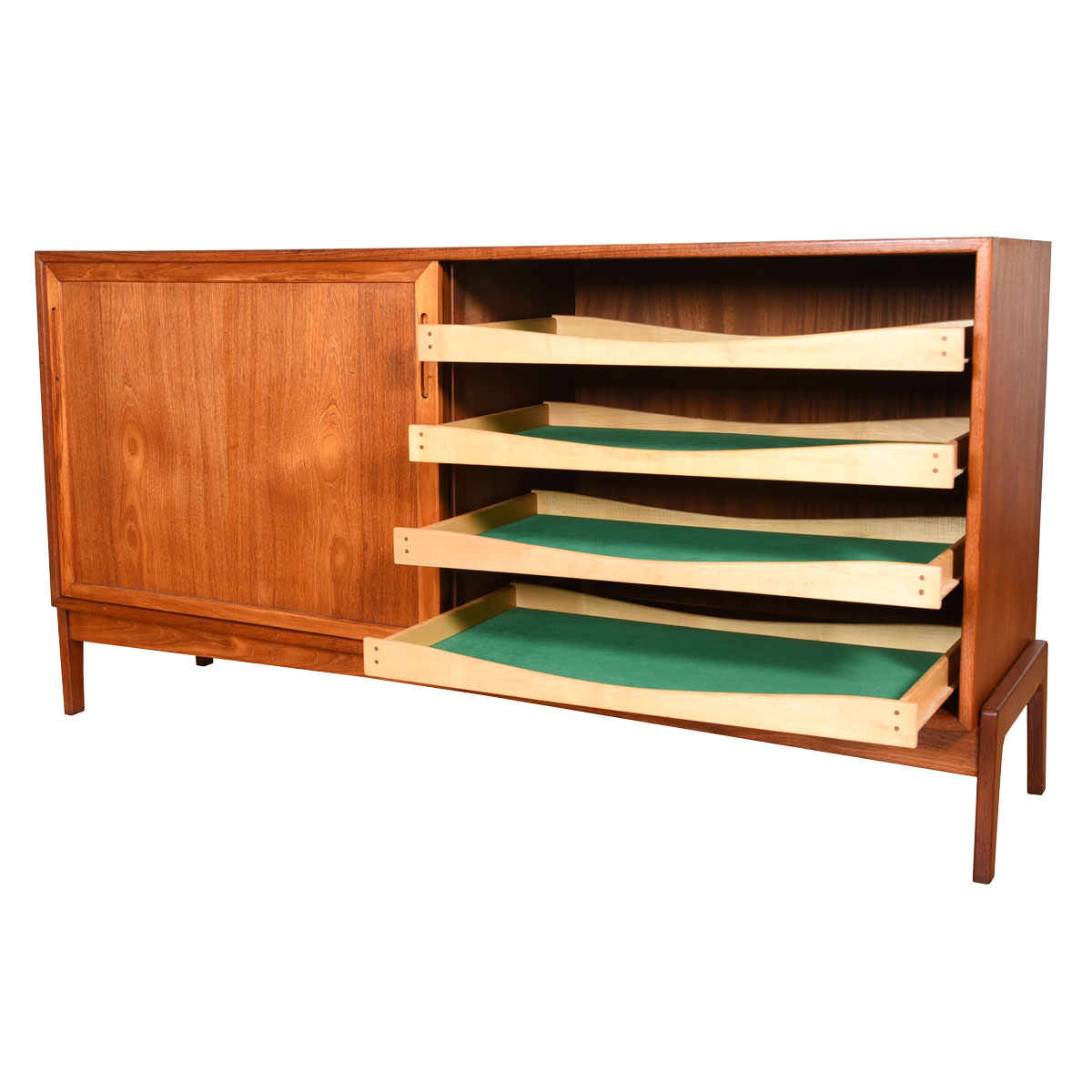 Arne Hovmand Olsen Danish Teak Sliding Door Credenza | Cabinet | Room Divider