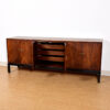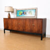 Asian-Inspired Mid Century Walnut Long Cabinet / Sideboard w/ Brass Latches