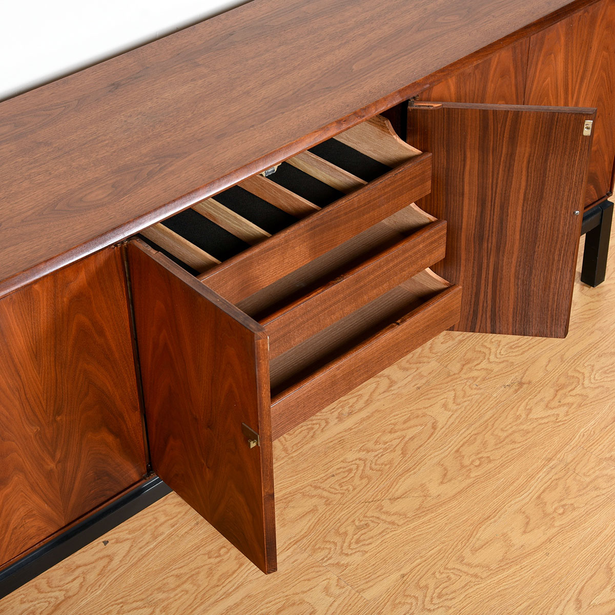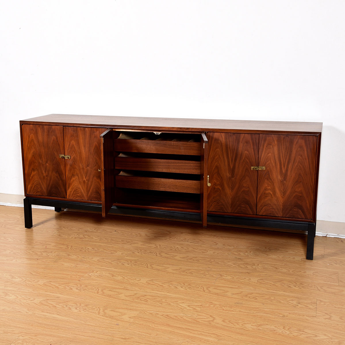 To arrange purchase or for more information about the Asian-Inspired Mid Century Walnut Long Cabinet / Sideboard w/ Brass Latches please call us at 202.882.1648 or email us at info@modernmobler.com