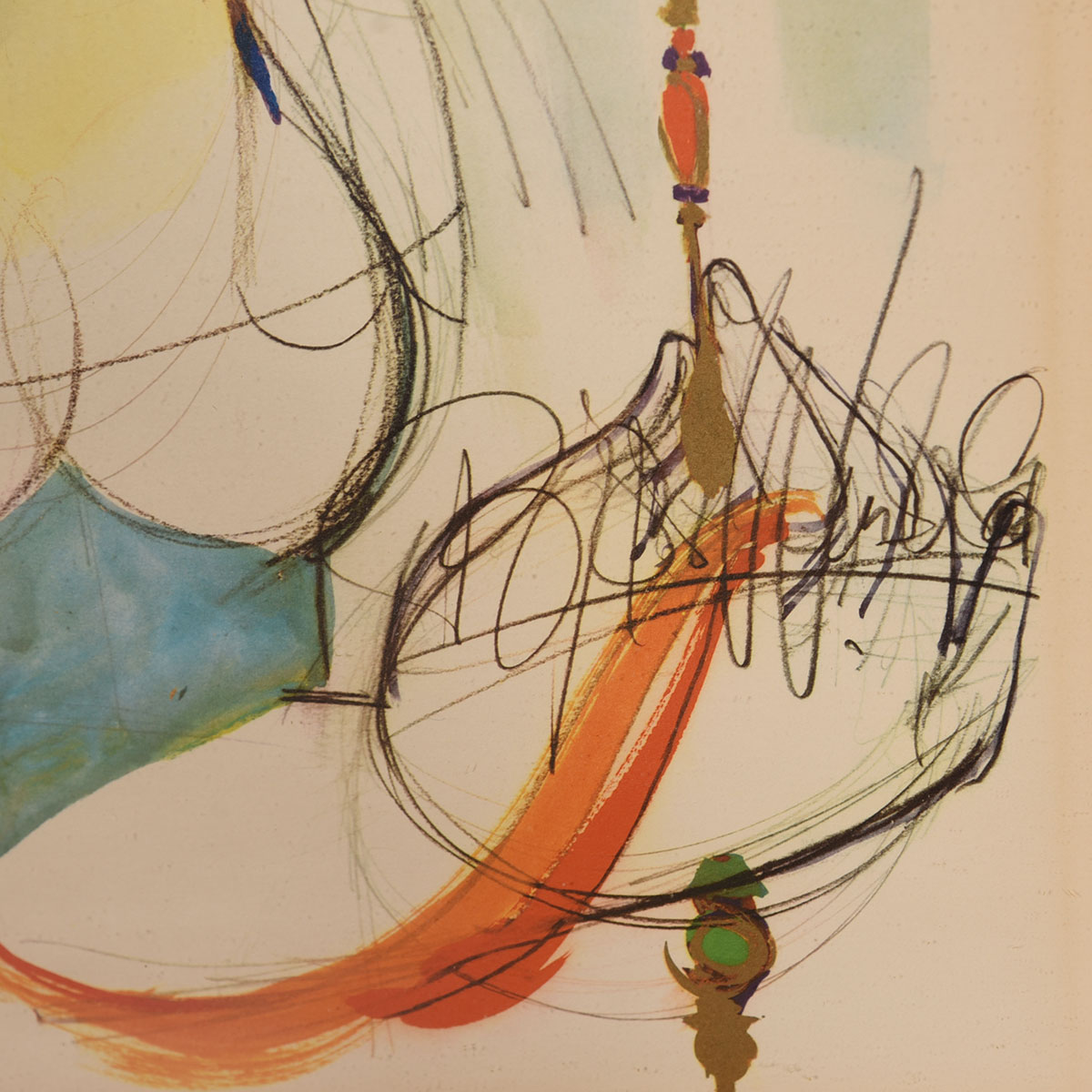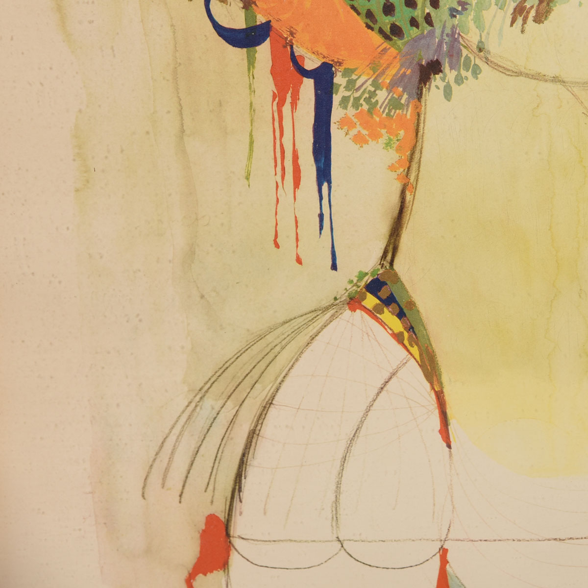 Here is a colorful illustration of a Lady-in-Waiting holding a fan by noted Swedish illustrator Bjørn Wiinblad.
