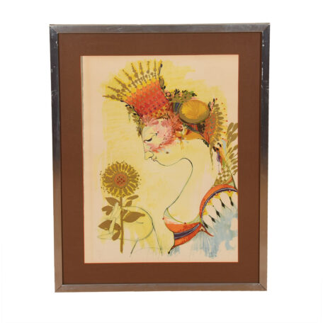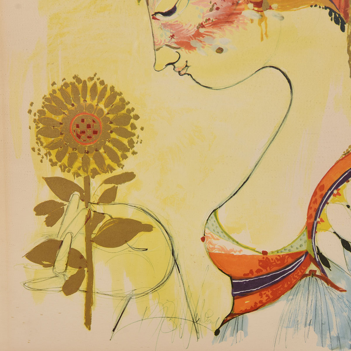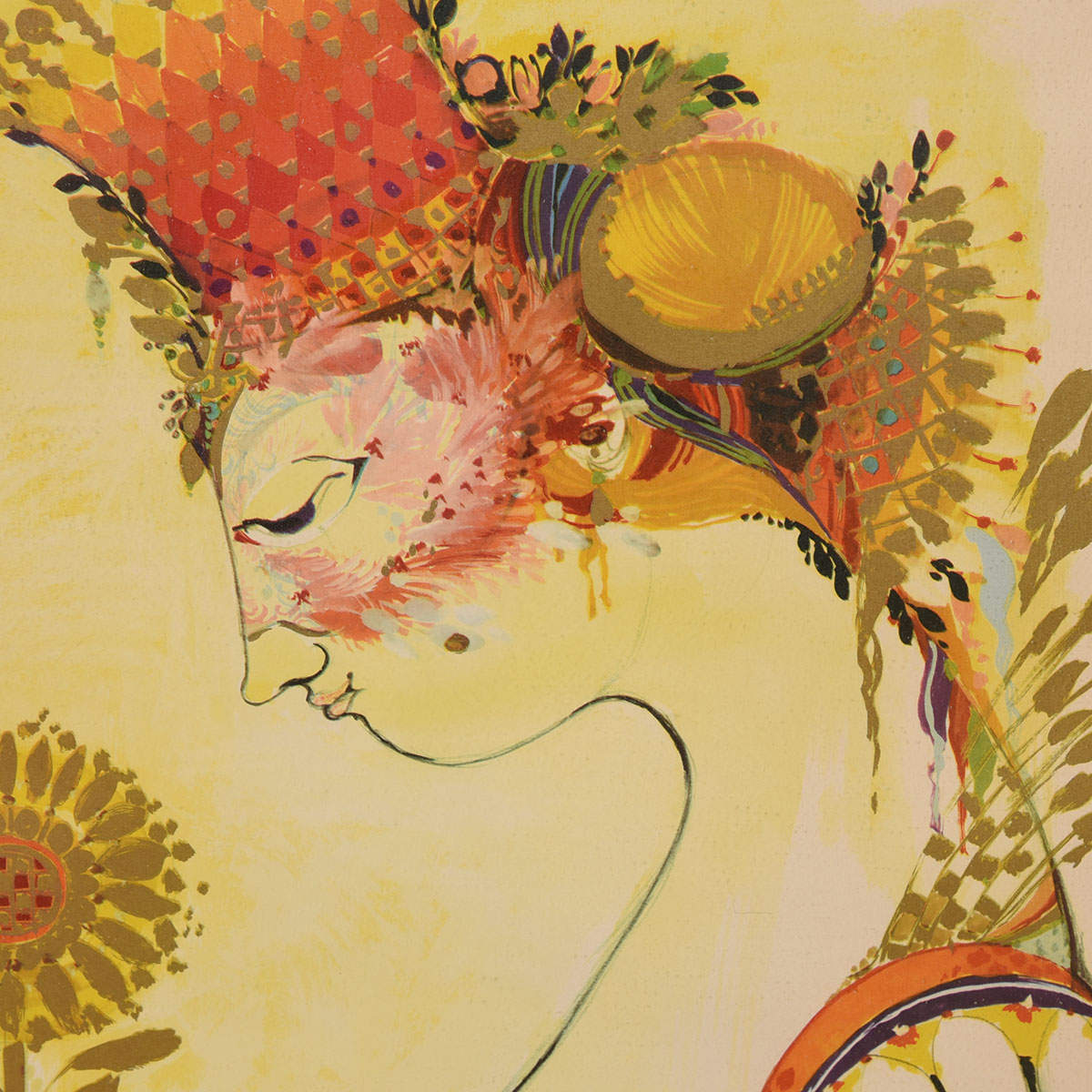 Bjørn Wiinblad Portrait of The Queen with a Sunflower