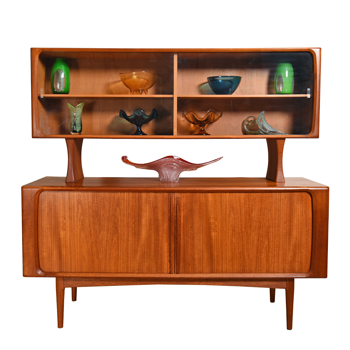 - This is a gorgeous 65” two-piece Bernhard, Pedersen & Son, Denmark sideboard, comprised of a display top and storage cabinet