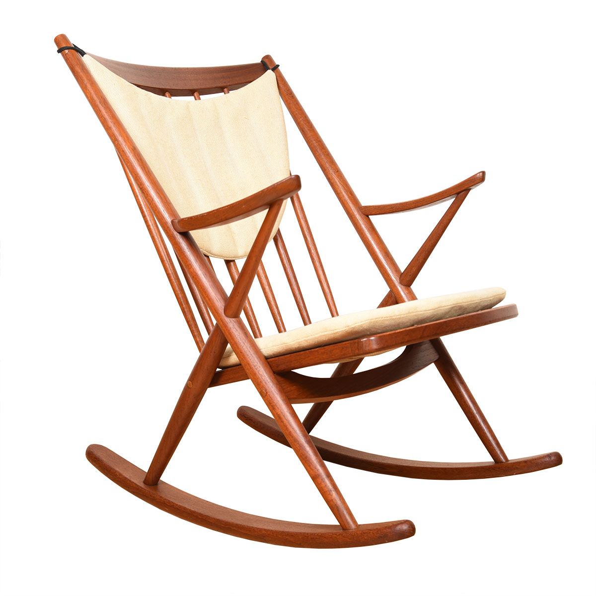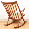 A Classic Danish Modern Rocking Chair in Solid Teak & Designed by Frank Reenskaug for Bramin, Denmark. Original Cushions. Measurements are Approximate.