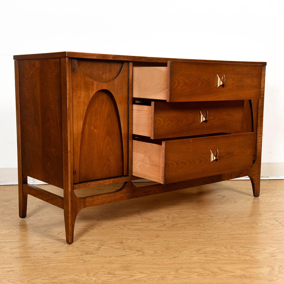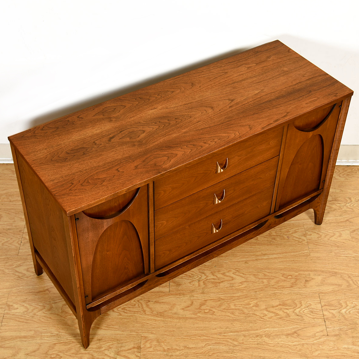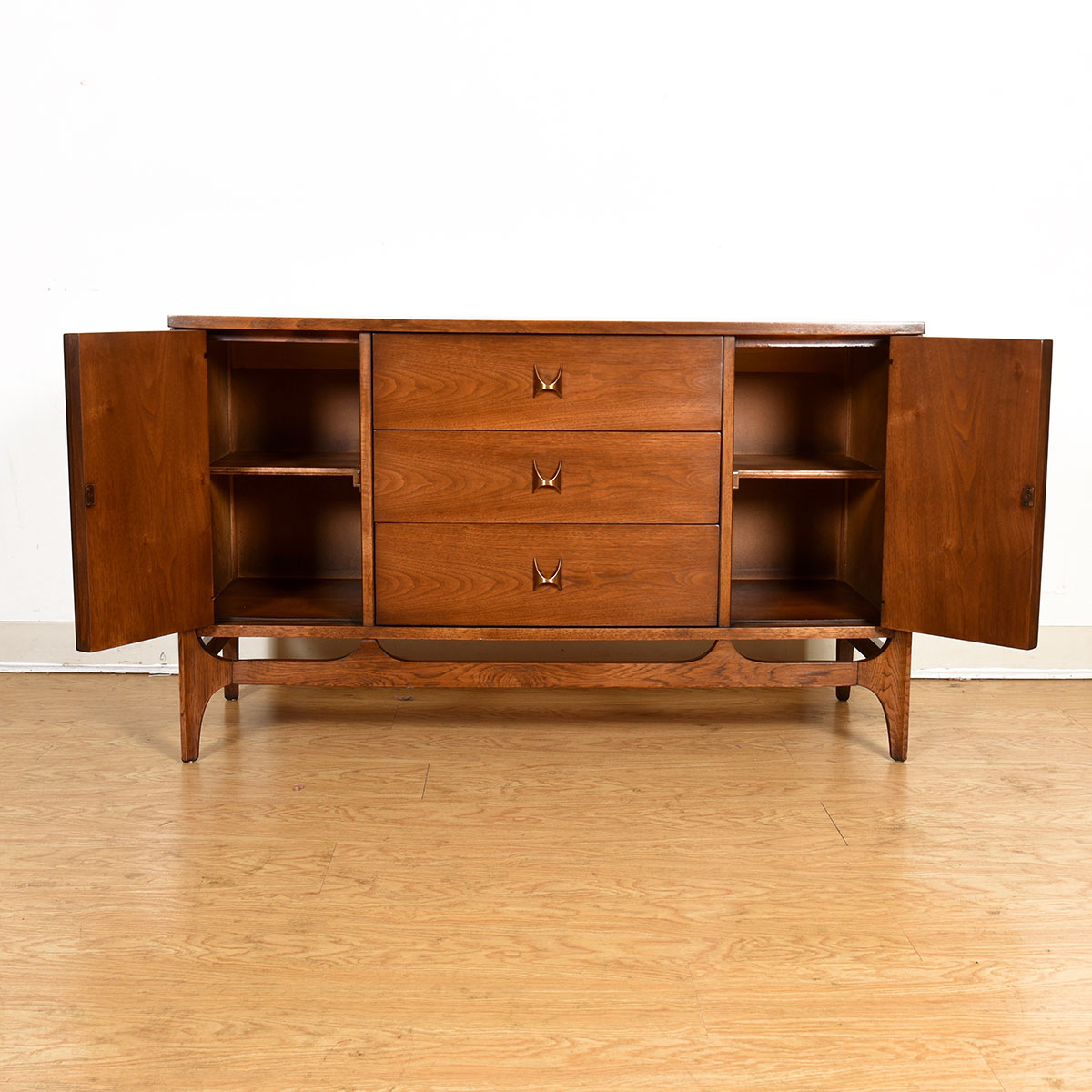 - Desirable compact Broyhill Brasilia sideboard features the iconic swoop on each end, serving as the handle for the door