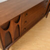 Iconic 1960’s Piece Worthy of Your Flat Screen or Clothing with its 9 Drawers. Three Wide Graduated Middle Drawers are Flanked on Both Sides with Brasilia’s Swooping Accents that Double as Handles. There Are an Additional Three Drawers Behind Both the Left & Right Side Doors Offering Plenty of Storage.