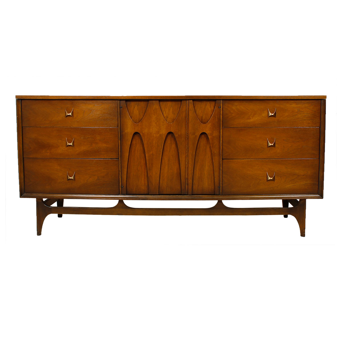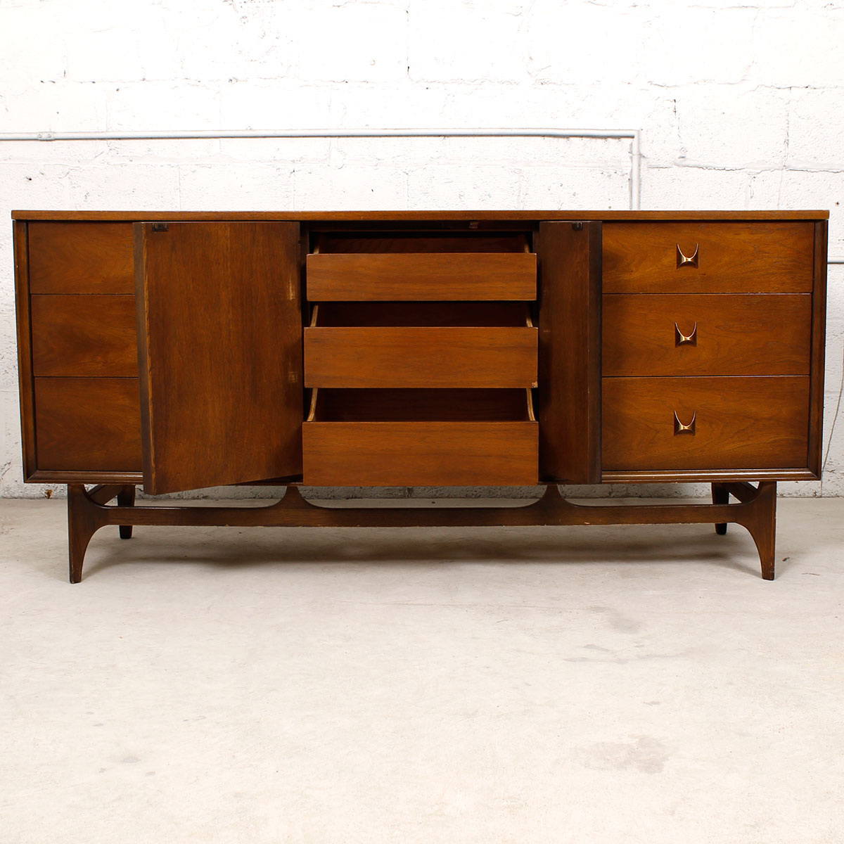 Iconic 1960’s Piece Worthy of Your Flat Screen or Clothing with its 9 Drawers. Each of the 2 Sides Have 3 Deep Drawers & the 2 Middle Doors Conceal 3 More Drawers giving this piece Lots of Storage.The Broyhill Brasilia Line Was America’s Most Popular Mid Century Modern Walnut Line of Furniture in the 1960s.